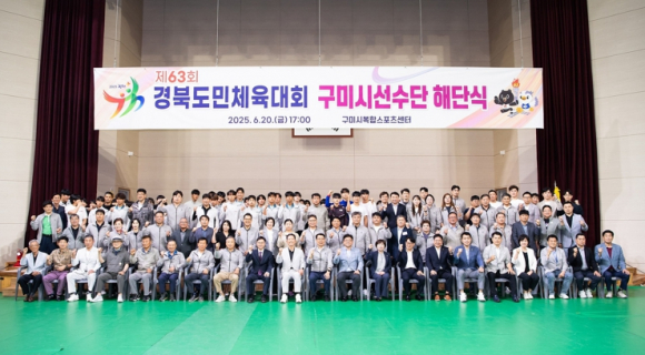 구미시는 지난 20일 복합스포츠센터 2층 다목적체육관에서 ‘제63회 경북도민체육대회 선수단 해단식’을 개최했다. 이날 행사에는 김장호 구미시장, 도·시의원, 기관단체장, 관내 학교장, 체육회 임원, 선수 등 500여 명이 참석했다.해단식은 선수단의 활약을 되새기고, 구미 체육의 미래 도약을 다짐하는 의미 있는 자리로 마련됐다. 행사는 △준우승기·준우승컵 및 상장 전달 △단기 반납 △감사패 및 표창패 수여 △우수선수 장학증서 전달 △축사 △기념촬영 순으로 진행됐다.특히 도민체전 참가 선수단을 위해 아낌없는 도움을 주신 후원자에게 감사패가 전달됐으며, 우수선수와 지도자, 협회 공로자들에게는 표창패가 수여됐다. 다양한 분야의 유공자들이 함께 빛낸 도민체전의 성과를 공유하며 선수단의 사기를 북돋았다.구미시는 지난 5월 9일부터 12일까지 김천시 일원에서 열린 제63회 도민체전에 총 30개 종목(시범종목 포함), 970명(선수 649명, 임원 321명)의 선수단을 파견해 △1·2위 달성 종목 18개 △3위 달성 종목 5개 등 다수 종목에서 고른 성과를 거두며 종합 준우승을 차지했다.김장호 시장은 “비록 2연패는 이루지 못했지만, 선수단의 열정과 땀이 준우승이라는 값진 결과를 안겨주었다”며 “내년 대회에서는 다시 우승기를 되찾을 수 있도록 시 차원의 행정·재정적 지원을 아끼지 않겠다”고 말했다.한편 내년 제64회 경북도민체전은 안동시와 예천군에서 공동 개최될 예정이며, 구미시 선수단은 재정비를 거쳐 다시 정상 탈환을 위한 준비에 돌입할 계획이다.