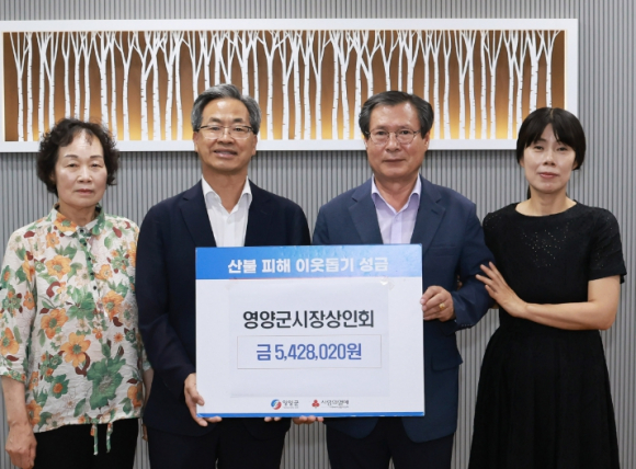 영양시장상인회(회장 남석진)는 6월 23일 영양군청을 방문해 상인회비 일부와 지난 산나물축제 기간 중 운영한 부스 수익금 전액을 성금으로 기부했다.이번 기부는 상인회원들의 자발적인 동참으로 이루어졌으며, 기부금은 약 542만 원에 달한다. 남석진 시장상인회장은 “지금 이웃들이 겪고 있는 고통에 작게나마 힘이 되고자 했다.”라며 “지역 상인들도 단순한 경제 주체를 넘어 공동체의 일원으로서 함께 아파하고 돕는 역할을 하겠다.”라고 전했다.영양시장은 오랜 세월 군민의 삶과 함께해 온 영양군 대표 전통시장으로 지역경제뿐만 아니라 공동체의 중심 역할을 해왔다. 또한 단순한 상거래를 넘어 지역문화와 주민 간 정을 이어주는 공간으로 자리매김하며 다양한 사회공헌활동을 위해 지역사회의 상생에 기여하고 있다.오도창 영양군수는 “이웃의 아픔을 함께 나누기 위한 자발적 기부가 이루어져 매우 뜻깊고 감사하다.”라며, ‘이번 상인회의 기부는 피해 주민들의 일상 회복뿐만 아니라 지역사회에도 매우 긍정적인 영향을 미칠 것’이라고 전했다.