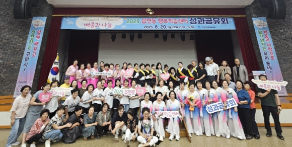 구미시는 지난 20일 평생학습원 대강당에서 ‘2025 읍면동 행복학습센터 성과공유회’를 개최했다. 이번 행사는 그동안 읍면동 행복학습센터에서 배우고 익힌 학습 성과를 공유하며, 수강생들의 자긍심을 높이고 함께 즐기는 화합의 자리로 마련됐다.행사는 평생학습 동아리 ‘공감기타’의 식전공연으로 시작됐다. 이어 평생학습창작소 박현규 대표가 ‘평생학습을 통한 넘나듦, 행복으로의 스며듦’을 주제로 특강을 진행해 시민들의 평생학습에 대한 이해를 도왔다. 이후 하모니카, 장구 등 읍면동 행복학습센터 수강생 7개 팀이 무대에 올라 그동안의 학습 성과를 발표했다.한 수강생은 “우리 집 가까운 곳에서 평생학습 강좌를 들을 수 있어 삶에 큰 활력을 얻었다”며 “14주간 배운 것을 무대에서 발표할 수 있어 떨리면서도 큰 동기부여가 됐다”고 소감을 전했다. 이어 “이번 경험이 앞으로도 배움을 이어가는 원동력이 될 것 같다”고 덧붙였다.김현주 평생학습원장은 “이번 성과공유회는 시민들의 배움이 개인의 성장을 넘어 지역사회 화합으로 확장될 수 있음을 보여준 의미 있는 자리”라며 “배움과 나눔의 평생학습 가치가 지역 전반에 퍼질 수 있도록 여러분이 앞장서 주시길 바란다”고 했다.