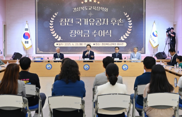 경상북도교육장학회(이사장 임종식)는 23일 본청 웅비관에서 6·25전쟁과 월남전 참전 국가유공자 후손을 대상으로 장학금 수여식을 개최했다고 밝혔다. 이번 장학금 수여식은 ‘대한민국 6·25 참전 유공자회’ 정연흡 지부장과 ‘대한민국월남전참전자회’ 김준휴 지부장 등 관련 단체장이 참석한 가운데, 조국을 위해 희생한 참전 유공자의 숭고한 정신을 기리고, 그 후손들이 자긍심을 갖고 미래를 설계할 수 있도록 돕기 위해 마련됐다. 경상북도교육장학회는 2020년부터 참전 유공자의 공헌을 기리기 위해 장학금을 꾸준히 지급해 왔으며, 2025년부터는 1인당 지원 금액을 100만 원으로 증액하여 올해 20명에게 총 2,000만 원의 장학금 전달했다. 임종식 이사장은 “국가를 위해 헌신한 참전 유공자의 숭고한 정신을 이어가는 자랑스러운 우리 학생들이 그 뿌리를 기억하고, 앞으로 학업은 물론 사회적 책임을 함께 품은 인재로 성장해주길 바란다”라며, “교육장학회는 앞으로도 국가를 위해 희생한 분들의 뜻을 기리고, 그 후손들이 자긍심을 갖고 미래를 설계할 수 있도록 더욱더 책임 있는 장학 지원을 이어가겠다”라고 말했다.
