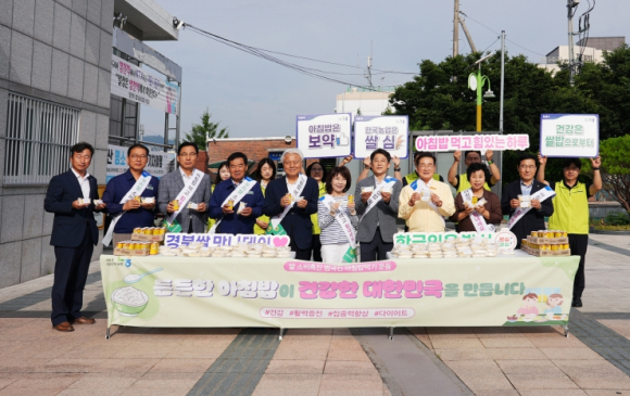 NH농협 영천시지부는 24일 영천시와 함께 영천역에서 시민들에게 우리 쌀로 만든 백설기를 나눠주는 ‘아침밥 먹기 운동’ 캠페인을 펼쳤다.이날 행사에는 최기문 영천시장을 비롯해 김강훈 NH농협 영천시지부장 및 직원, 성영근 영천농협조합장 등 30여 명이 참석한 가운데, 출근 시간 영천역을 이용하는 시민들에게 우리 쌀로 정성껏 만든 백설기와 식혜 500개를 전달했다.김강훈 NH농협 영천시지부장은 “이번 ‘아침밥 먹기 운동’ 캠페인을 통해 우리 쌀에 대한 긍정적인 인식을 확산하고, 쌀 소비 촉진에 기여할 수 있기를 바란다”고 말했다.이날 행사에 참석한 최기문 영천시장은 “쌀 소비 확대를 위해 힘쓰고 있는 농협에 감사드린다”며 “영천시도 이에 적극 동참해 쌀 소비자에게 실질적인 도움을 제공하고, 쌀 소비 활성화를 위한 다양한 사업을 지속적으로 추진해 나가겠다”고 밝혔다.