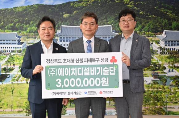 ㈜에이치디설비기술단이 24일 경북도청을 방문해 경북 북부지역 산불 피해복구와 이재민 지원을 위한 성금 300만원을 전달했다.㈜에이치디설비기술단은 구미시 송정동에 본사를 두고 건축설비 설계·감리 및 소방설비 설계 등의 건설엔지니어링 사업과 기계설비성능점검업 등의 사업에 매진하고 있는 지역 기업이다.이날 전달식에는 김학홍 경상북도 행정부지사와 정석래 ㈜에이치디설비기술단 대표이사가 참석해 나눔의 시간을 가졌으며, 성금은 경북 사회복지공동모금회에 기탁돼 산불 피해 주민들의 생계 복구를 위해 사용될 예정이다.정석래 ㈜에이치디설비기술단 대표이사는 “성금의 액수가 작아 오히려 미안한 마음이지만 산불 피해로 어려움을 겪는 지역 주민에게 작은 마음이나마 함께 나누고 싶었다.”라며 성금의 이유를 밝혔다. 김학홍 행정부지사는 “아픔을 겪고 있는 누군가에게 가장 필요한 것은 우리가 당신과 함께하고 있다는 마음의 표현이다. 성금은 피해 주민들의 빠른 일상 회복과 생활 안정을 위해 소중히 사용하겠다.”라며 깊은 감사의 마음을 전했다.