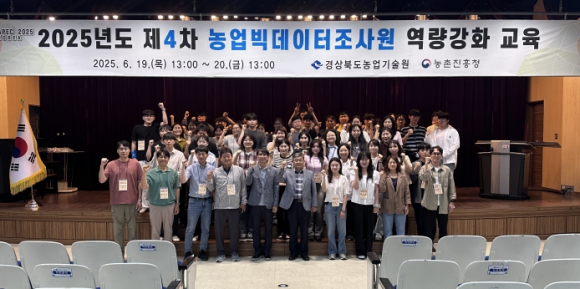 경상북도농업기술원은 19일부터 20일까지 이틀간 경상북도농업인회관에서 전국 9개 도의 조사원과 관계관 90여 명이 참석한 가운데‘2025년도 제4차 농업빅데이터조사원 역량강화 교육’을 실시했다.이번 교육은 농업 현장 데이터를 수집‧활용하는 국가사업‘농업재배 전주기 DB 구축’의 핵심 인력인 농업빅데이터조사원의 전문성을 높이기 위해 마련됐다. 2019년부터 시행 중인 농업재배 전주기 DB 구축 사업은 농촌진흥청과 전국 도 농업기술원이 협력해 전국 단위 21개 작목 516농가(경북10개 작목 94농가)를 대상으로 파종부터 수확까지의 전 과정을 조사하고, 빅데이터를 구축하고 있다. DB 구축을 위한 현장 수집 정보는 딥러닝과 AI 적용 등 최신 분석기술을 적용해 농가 의사결정 지원에 활용되므로 양질의 데이터 확보가 매우 중요하다.따라서, 이번에는 경북에서 사과‧포도 재배생리 및 생육조사 방법, 농업 분야 영상분석 활용, 생성형 AI 적용 스마트팜이라는 주제로 각 분야 전문가를 초빙해 강의를 진행했다.교육을 통해 디지털 농업 분야 전문가를 양성하고, 이를 바탕으로 고품질 농업 데이터를 수집‧분석함으로써 농가 재배 기술 향상과 소득 증대에 기여할 것으로 기대된다.김상국 디지털원예연구과장은 “농업 대전환 중심에는 빅데이터가 있고, 농업빅데이터조사원은 디지털 농업 연구의 선두 주자이다”며 “경상북도는 농업 빅데이터를 기반으로 현장에 적용가능한 실용 기술을 개발하고 보급해 나가겠다”고 밝혔다.