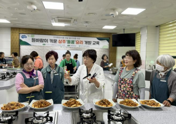 상주시농업기술센터는 지난 24일 오전 10시,『들바람이 키운 상주 들콩요리 개발 교육』개강식을 교육생 25명이 참석한 가운데 기술센터 전통식문화체험교육관에서 진행했다.이번 교육은 다음 달 9일까지 주 2회(화, 수요일), 총 6회 과정으로 진행되며, 우리 지역 넓은 들녘에서 키운 콩을 활용하여 다양한 음식을 만들어 봄으로써 회원 스스로 콩 요리를 개발하고 상품화하여 지역농산물 소비를 촉진하고자 추진하게 됐다.개강식에 이어 이번 교육 강의를 맡은 백석문화대학교 이애자 교수님의‘콩의 이해와 활용 식단’이라는 주제로 한 이론수업과 콩을 활용한 음식 만들기 수업이 진행됐다. 이후 교육에서는 닭고기콩칼국수, 가지콩찜, 콩파스타, 콩버거, 콩스튜 등 한식과 양식을 넘나드는 다양한 실습 교육이 진행될 예정이다.이날 개강식에 참석한 서정현 미래농업과장은“국내 콩 자급률 향상을 위한 논 이모작 재배로 우리 지역에서는 품질 좋은 콩이 많이 생산되고 있다. 이번 교육을 통해 콩을 활용한 다양한 음식들이 개발되고 더 나아가 상품화로 이어져 콩 소비가 촉진될 수 있는 계기가 되기를 바란다.”고 말했다.