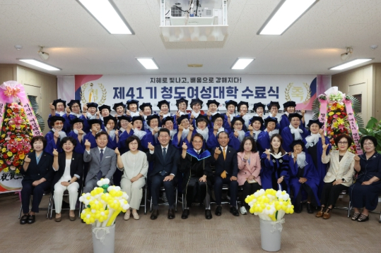 청도군은 지난 25일 이서면사무소에서 여성대학 수료생과 내빈 60여명이 참석한 가운데 제41기 청도여성대학 수료식을 가졌다. 청도여성대학은 체계적인 교육을 통해 잠재 능력을 개발하여 우수한 여성 리더 발굴과 육성을 위한 사업으로 이번 제41기 청도여성대학은 35명의 수료생을 배출했다. 청도군의 문화와 예술을 리드하는 여성전문가 양성을 목표로 지난 3월 26일 개강하여 6월25일까지 매주 수요일, 14주간 11회의 이론수업과 3회의 현장학습 등 다양한 강의가 진행됐다. 특히 거제도 문화탐방과 연극 관람 현장학습은 수업 내내 활기찬 웃음과 에너지 발산으로 수강생들의 큰 호응을 얻었다. 소감문을 발표한 수료생은 “여성대학을 통해 새로운 지식과 역량을 얻을 수 있었고 다양한 배경의 사람들과 네트워크를 형성할 수 있어서 큰 힘이 됐다. 이제는 배운것들을 바탕으로 지역사회에 기여하고 싶다.”며 청도군에 감사의 마음을 전했다. 김하수 청도군수는 “바쁜 일상속에서도 여성대학에 참여하여 수료하게 된 것을 진심으로 축하드린다. 여성대학 수료생들이 지역 사회의 발전에 큰 역할을 하게 될 것으로 기대하며 앞으로 청도군민 한분 한분 모두 지역 인적자원으로서의 역할을 다할 수 있도록 평생교육에 더욱 힘쓰겠다.”고 말했다