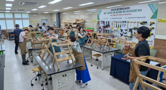 경상북도울진교육지원청 발명교육센터는 2025년 6월 24일 13시부터 16시까지 울진군 관내 초등학교 교장단을 대상으로 한 ‘2025년 발명·MAKER 교육 활성화를 위한 관리자 연수’를 성공적으로 실시했다. 이번 연수는 학교 현장에서 발명·MAKER 교육에 대한 이해와 관심을 높이고, 창의력 및 문제해결력 함양 교육의 중요성을 공유하기 위해 마련됐다. 교장들은 ‘나만의 사이드 테이블 만들기’를 주제로 한 목공 체험형 메이커 교육에 직접 참여했다. 교육 과정은 가공, 조립, 마름질, 칠하기 등 실제 목공 작업을 포함해 실질적이고 체계적으로 구성됐다. 초등교장교육연구동아리(울진CEO) 회장을 역임하고 있는 도영진 교장은“직접 목공 메이커 체험을 해보니 발명·메이커 교육의 중요성을 다시 한번 느낄 수 있었고, 학교 현장에 적용할 수 있는 다양한 아이디어를 얻을 수 있었다. 뜻깊은 시간을 만들어주신 울진교육지원청 관계자분들께 감사하다”라고 연수에 참여한 소감을 전했다. 이기협 울진교육지원청 교육장은 “이번 교장단 연수를 통해 학교 현장에서 발명 및 메이커 교육의 전문성과 실천 역량이 한층 강화될 것으로 기대한다. 각급 학교의 창의적 체험활동 질 향상과 함께, 4차 산업혁명 시대에 필요한 융합적 사고력과 문제해결력 확산에도 긍정적인 영향을 줄 것”이라고 밝혔다.