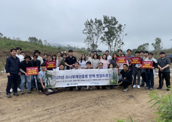 경상북도는 25일 소나무재선충병 피해가 심각한 포항시 북구 청하면 일원에서 산림병해충 실무자 30여 명이 참석한 가운데‘소나무재선충병 방제 현장토론회’를 개최했다.이번 토론회는 현장 중심의 효과적인 방제전략을 공유하고 시군 간 협력체계 강화를 목적으로 개최됐으며, 참석한 실무자들은 포항시 방제 현황을 청취하고 다양한 방제 방법의 현장 적용 사례와 이후 관리 방안 등에 대해 심도 있게 논의했다.최근 도내 재선충병 피해는 규모화·집단화되는 양상을 보이고 있으며 올해 초 발생한 초대형 산불 이후 매개충 개체 수가 급증할 우려가 있는 등 방제 여건이 한층 복잡해지고 있다.이에 따라 기존의 단목 위주 방제를 벗어나 수종 전환, 강도간벌, 정밀드론 방제 등 보다 체계적이고 전략적인 대응이 요구되고 있다. 현재 도내 5개 시군, 총 3만 1,375ha가 특별방제구역으로 지정되어 있으며 포항시와 안동시를 중심으로 재선충병 피해를 본 소나무류를 제거하고 다른 수종으로 교체하는 수종전환 방제사업이 활발히 추진 되고 있다. 사업은 산주에게는 입목 처분 수익을 제공하고, 시군에는 방제 비용 절감 효과를 가져와 대응 효율성과 생태계 안정성 확보에 이바지한다.강도간벌은 피해 고사목과 열세목을 선제적으로 제거해 숲의 밀도를 조절함으로써 매개충의 서식처를 줄이고 확산을 차단하는 데 효과적이며, 산림의 건강성과 생산성 향상에도 긍정적인 영향을 미치고 있다.아울러 정밀드론 방제는 매개충 개체 수 억제에 효과적인 대안으로 주목받고 있으며, 지상 방제와 함께 추진해 재선충병 확산 방지에 실질적인 성과를 거두고 있다.다만, 약제 살포에 따른 이해관계자의 우려 해소를 위해 사전 안내, 전문기관 안전성 검토 및 행정 절차 준수 등이 철저히 선행되어야 한다.참석자들은 토론회를 통해 “기존 방제 방식의 한계를 극복하고 상황에 부합하는 대안을 모색하는 데 큰 도움이 됐다”고 평가했다.조현애 경상북도 산림자원국장은 “재선충병 방제의 핵심은 전략적인 우선순위와 방제 방법 결정, 방제 품질 향상에 있다”며 “이번 토론회가 시군 간 협력체계 강화와 실무 대응력을 높이는 계기가 되기를 기대한다”고 밝혔다.