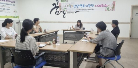 문경시청소년상담복지센터는 6월 24일 화요일‘1388 상담․멘토지원단 사례회의’를 센터 내 교육실에서 운영했다.센터에서 2007년부터 운영하고 있는‘1388 멘토링 사업’은 관내 청소년의 심리적 안정을 위한 정서적 지원체계 구축을 통해 청소년들의 밝고 건강한 성장을 돕는데 목적을 두고 있다.이번‘1388 상담․멘토지원단 사례회의’는 위기청소년 멘토링 프로그램의 효율적인 운영을 위해 멘티에 대한 개입방법 및 앞으로의 방향성을 논의하여 보다 효과적으로 멘티가 건강하게 성장할 수 있도록 돕고 멘토의 전문성 향상을 위해 운영됐으며, 멘토의 상담 진행시 어려운 점을 들어보고 멘티에게 필요한 지원에 대해 이야기 해 볼 수 있는 기회를 가졌다. 2015년부터‘문경시 1388 상담․멘토지원단’활동을 하고 있는 김〇〇 선생님은“지역의 위기청소년들에게 작은 도움이나마 줄 수 있어 보람을 느끼며 사례회의를 통해 상담 진행 시 어려운 점을 공유하고 다른 선생님들의 노하우를 공유함으로써 발전할 수 있는 기회가 되어 좋았다”고 전했다.
