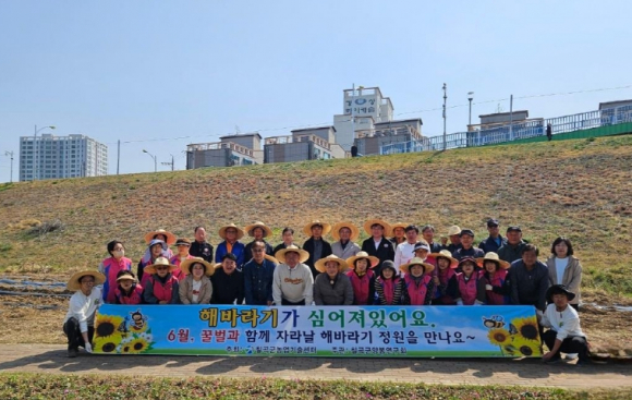 칠곡군은 지난 4월 16일, 왜관 흰가람둔치 일원에 해바라기를 심었다. 이날 행사는 칠곡군양봉연구회와 양봉 농업인들이 함께 참여해 지역 공동체가 힘을 모아 의미 있는 생태 실천을 펼쳤다.이번에 파종된 해바라기 품종은 키가 1.2m 내외로 자라는 ‘왜성 해바라기’로, 해당 품종의 화분은 꿀벌에 피해를 주는 응애류 해충의 저감에 효과가 있는 것으로 알려져 있다. 이를 통해 꿀벌 보호는 물론, 건강한 생태환경 조성에도 도움이 될 것으로 기대된다.특히 오는 6월경에는 해바라기 개화에 맞춰 흰가람둔치에 아름다운 해바라기 정원이 조성될 예정으로, 지역 주민과 방문객에게 생태경관 자원으로서도 큰 볼거리를 제공할 전망이다.김재욱 칠곡군수는 “꿀벌은 농작물 수정을 돕는 중요한 생물로, 우리식탁과 생태계의 건강을 지키는데 없어서는 안될 존재”이라며, “오늘 심은 해바라기가 꿀벌을 살리고, 칠곡의 자연을 더욱 풍요롭게 만들기를 바란다”라고 밝혔다.칠곡군은 앞으로도 양봉산업특구로서 꿀벌과 자연이 공존하는 지속가능한 생태도시 구현을 위해 다양한 노력을 이어나갈 계획이다.