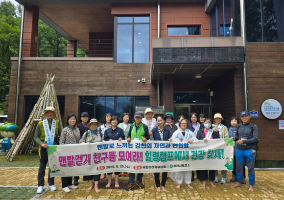 김천시는 지난 6월 25일 국립김천치유의 숲에서‘맨발걷기 친구들 힐링캠프`를 운영하여 참가자들로부터 긍정적인 호응을 얻었다.‘맨발걷기 친구들`은 지난 3월 김천시보건소에서 실시한 맨발걷기 이론 및 실습 교육을 수료한 시민들이 결성한 동아리로, 일상 속에서 맨발걷기를 꾸준히 실천하고 있다.이번 힐링캠프는 동아리 활동을 더욱 활성화하고 전문적인 걷기 교육을 제공하기 위해 마련됐으며, 참가자들은 국립김천치유의 숲 내 잣나무 숲길을 맨발로 걸으며 자연이 주는 피톤치드를 체험했다. 이어 소도구를 활용한 전신 스트레칭 프로그램에 참여해 유연성을 높이고, 신체의 긴장을 완화하는 시간을 가졌다. 또한, 2급 걷기지도자 자격을 보유한‘바르게 걷기 홍보단`과 연계하여 올바른 걷기 자세 교육도 함께 진행됐으며, 이를 통해 참가자들은 보다 효과적이고 안전한 걷기 습관을 익히는데 도움을 받았다.손중일 건강증진과장은“이번 힐링캠프를 통해 시민들이 자연 속에서 심신의 건강을 회복하고, 올바른 걷기 습관을 정착하는 계기가 됐길 바란다”며, “앞으로도 시민들의 높아진 관심에 부응해 걷기 활성화를 위해 지속적으로 노력하겠다.”고 밝혔다.