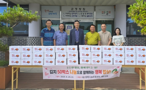 의성군 금성면은 지난 6월 25일 대구연탄나눔운동본부와 제오교회로부터 김치 50박스를 후원받아 관내 경로당 및 취약가구에 전달할 예정이라고 밝혔다. 이번 후원은 지역사회 내 나눔 문화 확산과 소외계층 지원을 위한 것으로, 제오교회는 3년 연속 꾸준히 김치 나눔을 실천하며 이웃 사랑을 몸소 실천하고 있다. 김대양 제오교회 목사는 “작은 정성이지만 김치를 통해 이웃들의 밥상에 따뜻한 마음을 전하고 싶다”며, “앞으로도 지역사회와 함께하는 나눔 활동에 힘쓰겠다”고 전했다.김희주 면장은 “어려운 이웃을 위한 나눔에 늘 앞장서 주시는 대구연탄나눔운동본부와 제오교회에 깊이 감사드리며 앞으로도 민관이 협력해 따뜻한 지역사회를 만들어 가는 데 최선을 다하겠다”고 말했다.
