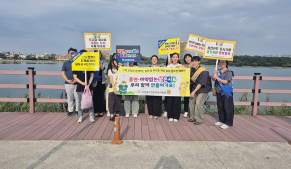 경상북도경산교육지원청은 6월 26일 세계 마약 퇴치의 날을 맞아 경산 남매지 일원에서 학생 및 지역주민을 대상으로‘흡연 및 마약 예방 홍보 플로킹 캠페인’을 실시했다. 이번 캠페인은 흡연의 건강 폐해, 금연의 중요성을 홍보하고 최근 급속도로 확산되고 있는 마약류의 오남용 및 불법 사용에 대한 심각성을 널리 알려 이로 인한 피해가 최소화될 수 있도록 지역 주민들의 관심과 경각심을 불러일으키고자 했다. 경산교육지원청 직원 20여명이 동참한 이날 캠페인은 △ 피켓, 어깨띠, 현수막 등 활용·홍보 △ 장바구니 배부(비닐봉지 줄이기) △ 담배꽁초 및 쓰레기 줍기 등 일상 속 환경 보호와 건강 활동을 동시에 챙기는 플로킹(걸으면서 버려진 담배꽁초, 쓰레기 줍기) 캠페인 형태로 진행함으로써 본 캠페인의 취지와 의미를 좀 더 실천적이고 행동적으로 전개했다. 박경화 교육장은“흡연과 마약은 우리 청소년과 지역사회에 심각한 영향을 미칠 수 있는 문제이고 이러한 문제를 예방하기 위해서는 우리 모두의 관심과 노력이 필요하다”라며“지역주민들의 지속적인 관심과 참여를 부탁한다”고 전했다.