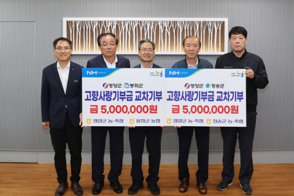 영양군은 지난 6월 27일 NH농협 영양군지부, 영양군 농·축협과 봉화, 청송군지부 및 농·축협이 고향사랑기부제를 통해 상호 1000만원을 교차 기부했다고 밝혔다.이번 기부로 NH농협 영양군지부, 영양군 농·축협 1000만원 – NH농협 봉화군지부, 봉화군 농협 500만원 및 NH농협 청송군지부, 청송군 농·축협 500만원이 각 지역에 전달됐다.봉화군 농협과의 상호기부는 2024년부터 2년째 이어져 오고 있으며, 청송군 농협과의 상호기부는 금년이 첫사례로 지역 간 협력과 교류 확대 및 지역경제 활성화에 기여하고자 마련됐다. 장문석 영양군지부장은 “꾸준한 고향사랑 상호기부로 활발한 지역 간 교류와 상생의 가치를 실현하고, 지역경제 활성화를 통해 지역민들의 생활이 더욱 윤택해 질 수 있는 계기가 됐으면 한다.”라고 밝혔다.오도창 영양군수는 “NH농협 군지부 및 지역 농·축협이 서로 같은 하나의 마음으로 고향사랑 상호기부에 동참해 주셔서 진심으로 감사드린다.”며 “지방자치단체 또한 상호기부 등 지역 간 다양한 협력을 통해 상생의 가치를 실현하고, 지역민들의 더 나은 삶을 위해서 끊임없이 노력하겠다.”고 말했다.