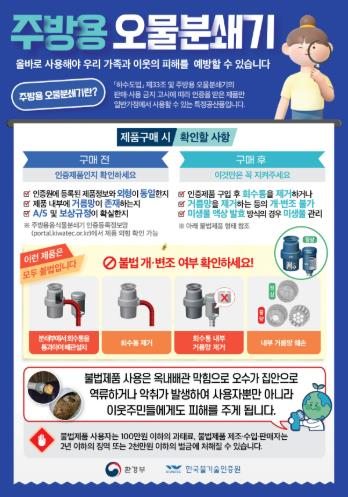 울진군은 올바른 주방용 오물분쇄기 사용방법, 불법 제품 근절 등 올바른 하수 배출 안내를 위해 적극적인 홍보에 나섰다. 주방용 오물분쇄기는 하수도법에 따라 한국물기술인증원에서 인증을 받은 제품만 사용할 수 있으며 분쇄한 음식물의 80%이상을 회수해야 한다. 불법 주방용 오물분쇄기를 사용할 경우, 음식물 찌꺼기와 기름때가 하수관에 쌓여 아파트 단지 내 악취와 오수 역류 등 생활 불편을 초래할 수 있으며 저층(1~2층) 세대에 피해가 집중되며, 나아가 공공하수처리장 운영에도 심각한 지장을 초래하여 하천 수질오염 등 막대한 환경적 피해를 유발한다. 최근에는 인증받지 않은 불법 제품을 판매하거나 인증 제품을 불법 개조하여 사용하는 사례가 증가하고 있다. △인증표시가 없는 제품 △일체형이 아닌 제품 △분쇄된 음식물 찌꺼기를 20% 이상 하수관으로 배출하는 제품은 모두 판매나 사용이 금지돼 있다. 특히, 인증받은 제품일지라도 영업소가 아닌 일반 가정에서만 사용 가능하고 제품을 개·변조 해서는 안된다. 이러한 불법 행위와 관련하여, 불법 제품을 판매한 자는 2년 이하의 징역 또는 2,000만 원 이하의 벌금에 처할 수 있으며, 사용자에게는 100만 원 이하의 과태료가 부과될 수 있으니 주의가 필요하다. 권재목 맑은물사업소장은“관내 공동주택 및 음식물류 폐기물 다량배출자 등을 대상으로 홍보 포스터를 배포하고, 군 홈페이지 및 읍·면 사무소를 통해 지속적으로 홍보를 병행할 계획”이라며, 군민들의 적극적인 협조를 당부했다.