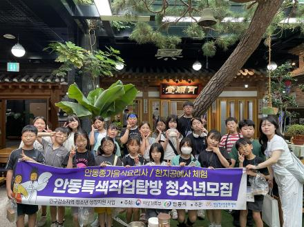 안동시와 안동청소년문화센터는 6월 28일, 안동의 전통문화를 이어가는 ‘안동특색직업 탐방 프로그램’을 관내 청소년 36명의 참여로 성황리에 마무리했다.‘안동특색직업 탐방 프로그램’은 여성가족부․안동시가 주최하고 안동청소년문화센터가 주관하는 ‘2025년 인구감소지역 청소년 성장지원 사업’의 일환으로, 지역 전통문화의 명맥을 잇는 특색직업을 청소년이 직접 체험하며 지역 이해도와 애향심을 높이는 동시에, 인구 유출을 완화하고 정주 기반을 다지는 것을 목적으로 기획됐다.▲안동종가음식 요리사 ▲안동한지 공예사라는 특색직업 체험활동으로 구성된 프로그램에 참여한 청소년들은 안동종가음식학교(디미학교)를 방문해 버버리찰떡과 안동건진국수를 직접 만들며 종가음식에 담긴 역사와 가족문화를 배웠고, 안동한지연화공예관에서는 한지 생산 과정을 관찰하고 사각함․접시 공예를 배우며 전통 공예의 섬세함과 가치를 체감했다.청소년들은 생산 현장에서의 체험활동을 통해 진로탐색에 대한 만족과 흥미를 드러냈으며, 활동 후 실시한 설문조사에서도 ‘안동에서만 얻을 수 있는 특별한 경험’, ‘우리 지역이 자랑스럽다’는 소감이 많아 지역 정체성과 자긍심 함양에 긍정적인 효과가 있었던 것으로 나타났다.안동청소년문화센터 관계자는 “청소년들이 지역특색직업을 체험하며 꿈을 구체화하고, 지역과 더 가까워지는 계기가 된 것이 큰 의미”라며, “앞으로도 안동의 문화와 산업을 접할 수 있는 다양한 프로그램을 준비하겠다”고 밝혔다.