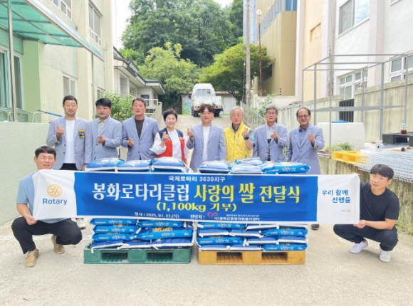 국제로타리 3630지구 봉화군로타리클럽은 지난 3일 (사)봉화군종합자원봉사센터에서 ‘사랑의 쌀 나눔 전달식’ 행사를 진행했다.이번에 나눔한 사랑의 쌀은 제46·47대 봉화군로타리클럽회장단 이·취임식에서 받은 쌀화환 1,100kg(300만원 상당)을 지역 내 독거노인, 장애인 등 복지사각지대 이웃에게 전달한 것이어서 더욱 의미가 깊다.원준석 봉화군로타리클럽 회장은 “취임 축하 의미로 보내주신 쌀이 어려운 이웃을 위해 도움이 되길 바라며, 앞으로도 지역사회를 위해 봉사하며 노력하는 단체로 자리매김하도록 최선을 다하겠다.”라고 밝혔다.김병남 (사)봉화군종합자원봉사센터 이사장은 “어려운 경제상황 속에 도움을 주신 로타리클럽 회원분들께 깊은 감사를 드린다.”며 “복지사각지대 이웃을 위해 소중히 전달될 수 있도록 하겠다.”라고 전했다.