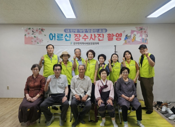 영덕군 강구면지역사회보장협의체는 지난 4일 관내 70세 이상 어르신 15명을 대상으로 무병장수를 기원하는 사진 촬영 행사를 진행했다.이번 사업은 고령 어르신들에게 품격 있는 장수사진을 제공함으로써 생의 마지막을 준비하는 부담을 덜고, 현재의 삶을 더욱 가치 있게 보낼 수 있도록 격려하기 위해 마련됐다.촬영은 협의체 방무열 위원의 재능기부와 지역 미용업소의 협조로 이뤄졌으며, 어르신들의 단정한 모습을 액자에 담아 각 가정에 전달할 예정이다.강수전 민간위원장은 “어르신들이 평소에 사진 찍으실 일이 별로 없어서 수줍어하시기도 했지만 이내 기쁜 마음으로 촬영에 임해주셨다”며, “앞으로도 지역 어르신들의 정서적 안정과 삶의 질 향상을 위한 맞춤형 복지사업을 지속적으로 발굴하겠다”라고 전했다.남희동(강구면장) 공공위원장 “주민들의 삶 깊숙이 긍정적인 영향력을 펼치고 있는 강구면지역사회보장협의체 위원들의 열정과 헌신을 바탕으로 주민이 중심이 되는 복지를 실현하고 함께 나누는 따뜻한 공동체를 만들어 나가겠다”라고 밝혔다.