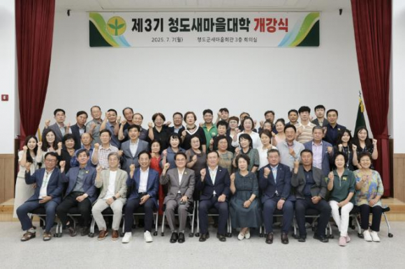 청도군은 7일 청도군 새마을회관에서 김하수 청도군수, 기화서 청도우리정신문화재단 대표이사, 송건섭 대구대 새마을운동연구센터장 등 80여 명이 참석한 가운데 『2025년 제3기 청도새마을대학』개강식을 가졌다.올해 3기를 맞은 새마을대학은 청도군이 주최하고 대구대 새마을운동연구센터가 주관하여, 청도군 새마을정신과 화랑정신을 접목해 군민의 자긍심을 높이고 지역 발전을 이끌 실천형 인재를 양성하는 데 목적을 두고 있다.교육과정은 7월 7일부터 8월 20일까지 매주 수요일 새마을회관에서 총 8회로 진행되며, “주민자치를 통한 새마을 만들기와 새마을 재테크” 등의 새마을 소양 강좌와 인문교육 강좌 및 현장학습 등 다양한 프로그램으로 주민 스스로 지역 사회 문제를 인식하고 해결할 수 있는 역량을 기를 수 있도록 구성됐다.특히 이번에 개설된 제3기 새마을대학은 전인주 청도군 새마을회장을 비롯한 새마을 4단체장 및 읍면 회장단과 임원이 수강하여 새마을 리더로서의 역량을 한층 더 강화할 예정이다.김하수 청도군수는 “청도새마을대학은 새마을정신을 현대적으로 재해석하고 지역 맞춤형 교육을 통해 새마을 리더를 양성함으로써 지역발전에 선도적인 역할로 기여할 것”이라며 “미래를 준비하는 교육 혁신으로 누구나 언제, 어디서나 배우고 성장할 수 있는 평생학습행복도시 청도를 만들겠다”고 말했다.