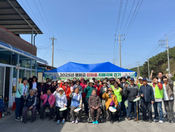 봉화군은 최근 봉성면 창평리 마을회관 일원에서 ‘치매 걱정없는 봉화군 건강한 미래’라는 주제로 ‘2025년 한마음 치매극복 걷기 행사’를 추진했다.이번 행사는 창평리 치매보듬마을 주민들 약 50명이 참가했으며, 주민들에게 치매 예방의 중요성을 알리고 치매예방에 좋은 ‘걷기’실천을 유도하기 위해 마련됐다.이날 행사에서는 치매안심센터 직원들과 함께하는 치매 예방 체조 및 걷기실천, 치매예방에 좋은 음식 맞추기, 치매예방 수칙 3.3.3 퀴즈를 이용한 같은 그림 맞추기 등 미션을 완료하면 스탬프를 받는 프로그램도 같이 진행해 치매 예방을 함께 실천했다.행사 후 참가자들은 “다 같이 걷기도 하고, 치매예방에 좋은 건강 정보도 알게 된 기분 좋은 하루였다.”라고 소감을 말했다.봉화군 치매안심센터 관계자는 “치매예방에 좋은 ‘걷기’를 실천하며 치매 걱정없는 봉화군을 위해 앞으로도 다양한 프로그램과 활동을 통해 지역 주민들의 건강한 삶을 위해 노력하겠다.”라고 전했다.