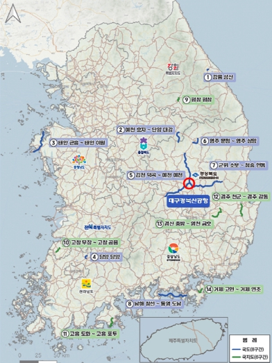 대구광역시 군위군은 대구경북신공항과 연결되는 도로 2개 노선이 일반국도로 승격이 됐다고 밝혔다. 국토교통부가 발표한 국도 승격 8개 노선 중 2개 노선이 대구경북신공항 연결 도로라는 점에서 향후 신공항 접근성 강화를 위한 연계 도로망 구축이 탄력을 받을 것으로 예상된다.먼저 일반국도 85호선은 김천시 덕곡동에서 예천군 예천읍 구간의 연장93.5㎞ 도로로 김천, 구미, 안동, 예천 지역과 신공항을 연결하는 주요간선 도로망이 될 것으로 기대된다.일반국도 16호선은 군위군 소보면에서 청송군 현동면 구간의 연장 59.3㎞도로로 청송, 의성 지역의 신공항 연결성 강화에 기여할 것으로 예상된다.이번 국도 승격은 도로정책심의위원회 심의(7.2~7.8)를 거쳐, 7월 11일에승격·지정 노선으로 고시할 예정이다. 기존 지자체에서 관리하던 도로가국도로 승격됨에 따라 향후 해당 도로 노선의 건설 및 관리가 국가 재정으로 추진된다는 것에 큰 의의가 있다.김진열 군위군수는 대구경북신공항의 성공을 위해 중앙부처와 대구광역시, 경상북도 등 관계 기관과 적극 협력하여 신공항과 연계한 도로, 철도망 등 교통망확충을 위해 더욱 더 노력하겠다고 밝혔다.
