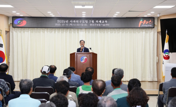 영양군은 7월 10일 영양군농업기술센터 대회의실에서 사과연구모임 회원 60여명을 대상으로 ‘2025년 7월 과제교육’을 성공적으로 개최했다고 전했다. 이번 과제교육은 급변하는 기후변화에 따른 다양한 병해충 발생으로 인해 어려움을 겪고 있는 사과 재배 농가에 실질적인 해법을 제시하고 연구모임의 전문성을 강화하고자 마련됐다. 교육은 현재 생육기에 적용 가능한 병해충 관리 방안을 중심으로 구성됐으며, 회원 간 정보 공유와 토론을 통해 현장의 경험과 노하우를 나누는 시간도 함께했다. 특히, 이날 교육에는 군위 사과연구센터 소속 병해충 전문가 김영수, 김순경 강사를 초청해 강의를 진행했다. 김영수 강사는 사과 병 방제 및 관리 교육을, 김순경 강사는 사과 해충 방제 및 관리에 대해 교육하면서 주요 병해충에 대한 발생원인, 진단 방법, 여러 방제 방안 등의 실질적인 관리 기술을 제시하여 회원들에게 큰 호응을 얻었다.교육에 참여한 연구모임 회원들은 “전문가들의 교육을 통해 사과 재배에 대한 이해를 높이고, 현장에 적용 가능한 재배 관리 기술을 배울 수 있어 매우 만족스럽다”고 소감을 밝혔다.오도창 영양군수는 ˝이번 과제교육이 영양군 사과 생산의 질적 향상과 생산성 증대에 기여할 것으로 기대하며, 앞으로도 영양군 사과 산업 발전을 위한 노력과 지원을 아끼지 않겠다˝고 밝혔다.