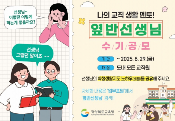경북교육청은 교육 현장에서 교사들이 겪는 생생한 생활지도 경험과 학교폭력 예방 사례를 공유하고, 교직의 보람과 가치를 함께 나누기 위해 ‘나의 교직 생활 멘토! 옆 반 선생님’이라는 주제로 수기 공모를 진행한다고 11일 밝혔다. 이번 공모는 교실 현장에서 학생을 마주하며 생활지도와 학부모 소통, 위기 대응 등 다양한 상황에 직면한 교원들의 실제 사례를 발굴하고, 이를 통해 교원 간 공감과 연대의 문화를 조성함으로써 저연차 교사와 담임교사의 업무 부담을 경감하고 현장의 애로사항을 해소하기 위해 마련됐다. 공모 기간은 오는 14일부터 다음 달 29일까지이며, 도내 초・중・고・특수학교와 각종학교에 재직 중인 교사, 교감, 교장, 전문직 등 모든 교원이 참여할 수 있다. 공모 주제는 ‘나의 교직 생활 멘토! 옆 반 선생님’으로, △학생생활지도 노하우 △학교폭력 예방 사례 △학부모 상담을 통한 소통 사례 등 교실 속에서 마주한 다양한 교육적 상황에 대한 생생한 이야기를 담아 A4 1~2매 분량의 수기로 작성한 후, 소속 기관을 통해 경북교육청 학생생활과로 공문 제출하면 된다. 경북교육청은 우수 수기를 선별해 모음집으로 제작해 도내 학교에 배부하고 누리집에 탑재할 예정이며, 자료는 담임교사와 학생 간 긍정적 관계 형성과 생활지도 역량 향상을 위한 실질적인 자료로 활용할 계획이다. 수기집은 오는 9월 중 발간되며, 우수작 선정 결과는 전문가 심사를 거쳐 10월 중 발표될 예정이다. 임종식 교육감은 “교직 생활은 늘 학생과 사람을 향한 고민의 연속이며, 그런 순간들을 함께한 동료 교원의 경험은 무엇보다 값진 자산”이라며, “이번 수기 공모가 교원 간 공감과 지혜를 나누는 따뜻한 계기가 되기를 바라며, 앞으로도 교사가 중심이 되는 교육 문화를 만들어 가는 데 최선을 다하겠다”라고 말했다.