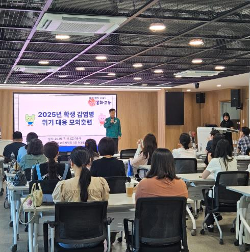 경상북도봉화교육지원청은 2025. 7. 11. 봉화 관내 유, 초, 중, 고등학교 및 보건소를 대상으로 학생 감염병 위기대응 모의훈련을 실시했다. 이번 훈련은 학교 현장에서 발생할 수 있는 감염병 상황에 대한 역량을 강화하고자 마련됐으며, 관내 학교와 보건소의 감염병 담당자들과 함께 실제 상황을 가정해 각자의 역할에 따른 임무를 수행하며 대처 방법을 익혔다. 특히 이날 훈련에서는 학생 확진자 발생 시 초기 대응부터 상황보고, 유관 기관 협조 요청 등의 과정을 점검했으며, 이를 통해 협력체계를 구축하고 각종 상황에 유연하게 대처할 수 있도록 했다. 당일 참석한 학교 감염병 담당 보건교사는“오늘 훈련을 계기로 학교 현장의 대응 역량을 높일 수 있었고, 앞으로도 감염병으로부터 안전한 학교 환경을 조성하기 위해 더욱 노력 하겠다.”고 말했다.