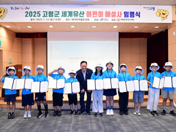 고령군은 대가야 고도 고령군의 찬란한 역사와 문화를 널리 알리고자 고령 세계유산 어린이 해설사를 양상하고 해설활동을 지원한다. 고령 세계유산 어린이 해설사는 올해 5월 한 달간의 모집을 통해 12명의 어린이가 선발되어 6차에 걸친 교육을 진행하였는데, 그간 해설사로서의 소양과 세계유산 지산동 고분군에 대해 학습하는 시간을 가졌다. 이날 임명식(12일)에서는 임명장 수여와 더불어 임명된 어린이 해설사들의 첫 번째 해설활동이 왕릉전시관에서 진행됐다. 어린이 해설사들은 임명식 이후 약 4개월간 정식 해설사로서 국내 최초로 확인된 대규모 순장무덤인 지산동 44호분을 재현한 왕릉전시관에서 해설을 이어갈 예정이며, 사전예약제(고령군청 홈페이지)로 운영된다. 고령군은 “대가야 고도 고령군의 역사와 문화, 그리고 그 중심에 있는 세계유산 고령 지산동 고분군의 가치를 널리 알리는데 어린이 해설사가 가장 앞장 설 것이라며, 많은 관심을 부탁한다”고 전했다.