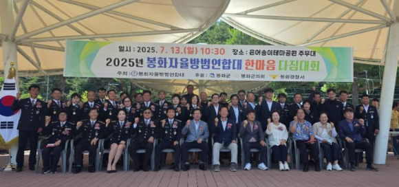 봉화자율방범연합대는 지난 13일 은어송이테마공원에서 대원과 가족, 지역 기관·단체장 등 350여 명이 참석한 가운데 ‘2025년 봉화자율방범연합대 한마음 다짐대회’를 성황리에 개최했다.이번 행사는 지역의 안전을 위해 힘써 온 자율방범대의 치안 의지를 다시 한번 다짐하고, 민·관·경 협력 치안을 더욱 공고히 하기 위한 취지로 마련됐다. 이날 행사에는 읍면 자율방범대원 및 가족을 비롯해 박현국 봉화군수, 정대리 봉화경찰서장, 봉화군의회 의원 등 많은 관계자들이 참석해 자리를 빛냈다.행사는 ▲국민의례 ▲격려사 및 축사 ▲모범대원 표창 ▲자율방범 결의문 낭독 ▲대원 화합 체육대회 행사 순으로 진행됐으며, 지역 치안에 기여한 우수 대원들에게 표창패 및 감사장이 수여됐다.오세일 자율방범연합대장은 “더운 날씨에도 불구하고 한자리에 모여준 대원들과 가족, 그리고 관계자분께 감사드린다.”며, “앞으로도 봉화군 자율방범대가 지역의 안전을 책임지는 든든한 버팀목이 될 수 있도록 최선을 다하겠다.”라고 밝혔다.박현국 봉화군수는 축사에서 “주민의 안전을 위해 밤낮없이 애쓰시는 자율방범대원 여러분의 현신과 봉사에 깊이 감사드린다.”며, “봉화군도 자율방범대가 보다 안정적인 기반 위에서 활동할 수 있도록 지속적으로 지원해 나가겠다.”라고 밝혔다. 한편, 이번 대회는 대원 간의 결속을 다지고 지역 치안의 중요성을 공유하는 뜻깊은 자리였다. 봉화자율방범연합대는 앞으로도 민·관·경 협력과 주민 소통을 바탕으로, 더 안전한 지역사회를 만들어가기 위해 최선을 다할 계획이다.