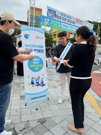 경상북도의성교육지원청은 7월 15일 오전8시부터 의성초등학교 정문 앞에서 등굣길 교통안전 캠페인과 연계하여 반부패·청렴정책 홍보 캠페인을 실시했다. 이번 캠페인은 등굣길을 지나는 학부모와 지역주민을 대상으로 진행됐으며, 경상북도교육청과 의성교육지원청이 추진 중인 반부패·청렴 정책을 보다 널리 알리고, 청렴한 사회문화 확산에 기여하기 위해 마련됐다. 이날 캠페인에 참여한 의성교육지원청 직원들과 학교 관계자들은 통학로 안전을 안내하는 활동과 함께, 청렴정책 내용을 담은 안내 리플릿을 배부하며 적극적인 홍보 활동을 펼쳤다. 이우식 교육장은 “청렴은 교육공동체 모두가 함께 실천할 때 더욱 큰 힘을 발휘할 수 있으며 앞으로도 지역과 함께하는 다양한 방식의 청렴 홍보 활동을 지속적으로 펼쳐 나가겠다.”라고 말했다.