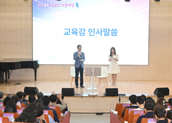 경북교육청은 15일 포항시에 있는 포항교육지원청 여울관에서 포항․울릉교육지원청과 함께 ‘제5회 소통대길 톡’ 행사를 개최했다고 밝혔다. ‘소통대길 톡’은 교육감이 직접 지역 기관을 방문하여 지자체 관계자 및 교육 공동체와 소통하며, 지역 교육 현안에 대한 공감대 형성과 상호 협력 방안을 모색하는 현장 중심의 타운홀 미팅 형식 행사다. 이날 행사는 △지자체 및 유관 기관장 접견 △지역 문화예술 공연 △기관별 주요 업무 보고 △교육감의 시 낭송과 인사말 △지역 교육 이슈를 공유하는‘이슈톡’ △교육 공동체와의 대화의 시간 ‘고민종식톡’ △AI 요약 및 교육감 마무리 인사 등 풍성하고 독창적인 프로그램으로 운영되어 소통의 장을 더욱 다채롭게 만들었다. 행사에는 임종식 경북교육감을 비롯해 경상북도의회 김희수․박용선 교육위원과 한창화․이칠구․이동업․연규식․서석영․손희권 도의원, 포항․울릉교육지원청 교육장, 학부모, 교육 원로, 교직원 등 200여 명이 함께했다. 식전 공연은 경북교육청 온울림 앙상블과 포항사제동행연합합창단이 아름다운 화음을 선사하며 분위기를 고조시켰다. 업무 보고에서 포항교육지원청(교육장 최한용)과 울릉교육지원청(교육장 이동신)은 학교 지원 실적과 업무 경감 노력, 교육환경 개선, 교육발전특구와 늘봄학교 운영 등을 중심으로 주요 업무 보고를 진행했다. 이외에도 포항교육지원청은 중입배정의 합리적 개선 방안과 학생 맞춤 특수교육지원 현황을, 울릉교육지원청은 어울림 해양교육문화 활성화를 기반으로 한 교육발전특구와 섬 지역이라는 제한적 교육환경을 극복한 현장 체험학습 지원 현황을 보고했다. 이어진 ‘이슈톡’ 영상 발표에는 김민규 양학중학교(포항) 학생과 김종현 장기초등학교(포항) 교사, 박은미 문덕초등학교(포항) 학부모가 영상 발언을 통해 △운동부 육성 지원 △책 읽어 주는 학부모 등의 학부모 참여 정책 △정주학교 활성화 대책과 지원방안 등 지역 교육 이슈를 제시했다. ‘고민종식 톡’에서는 포항과 울릉 지역의 교육 현안을 주제로 자유로운 질의응답이 오갔으며, 교육 공동체 구성원들의 다양한 의견이 활발히 공유되며 지역 현안 해결을 위한 공감대를 형성하는 시간을 가졌다. 임종식 교육감은 “경북교육은 교육공동체의 오늘의 행복과 미래의 비전을 잇는 징검다리 역할을 하겠다”라며, “앞으로도 현장의 목소리에 더욱 귀 기울이며 지속 가능한 교육을 위해 최선을 다하겠다”라고 강조했다. 한편, 이번 포항․울릉 지역 행사를 끝으로 상반기 ‘소통대길 톡’은 마무리됐으며, 하반기에는 도내 11개 직속 기관과 12개 교육지원청을 대상으로 계속 이어질 예정이다.