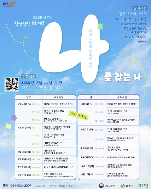 상주시는 청년들이 스스로를 깊이 이해하고 삶의 방향을 재정립할 수 있도록 돕기 위해 ‘2025년 청년성장프로젝트’를 본격 추진 중이다. 단순한 취업 지원을 넘어, 정서적 회복과 자기이해를 바탕으로 삶의 전반을 설계할 수 있도록 돕는 자기탐색형 실천 프로그램이다.이번 프로젝트는 상주시가 주최하고, 상주먹거리연대 사회적협동조합 ‘상주이음’이 주관한다. 청년들이 자신의 정체성과 감정을 탐색하고, 감각 기반 활동을 통해 자기표현과 진로 방향을 설계하는 경험 중심의 프로그램으로 구성돼 있다.지난 5월에는 첫 번째 과정이 진행됐으며, 사회 진입을 앞둔 청년과 이직을 고민하는 청년들이 참여해 공동체 활동과 자기이해 중심의 시간들을 통해 스스로를 돌아보는 계기를 가졌다.이어서 7월과 8월에는 3기와 4기 프로그램이 각각 6일간 운영된다. 주제는 ‘나를 찾아가는 시간’으로, 청년 각자가 자신에 대해 더 깊이 탐색하고 감각과 감정을 통해 정체성과 삶의 방향을 발견해 가는 것이 핵심이다.3기(7. 23. ~ 31.)는 공식 MBTI 검사, 인생 선배와의 대화 ‘사람책’, 감정 글쓰기 ‘나를 쓰는 밤’, 요리와 요가, 칵테일 실험실, 레터링 케이크 만들기 등 다양한 감각 기반 활동으로 구성된다.4기(8. 6. ~ 12.)는 애니어그램 검사(Why am I?), 퍼스널컬러 진단, 사주명리, 미술심리, 향기 제작, 플라워 클래스 등을 통해 보다 깊이 있는 자기 탐색이 이루어질 예정이다.상주시는 이 프로젝트를 통해 청년들이 정답을 찾기보다, 자신만의 방향을 찾을 수 있도록, 스스로를 존중하고 자신의 속도로 성장할 수 있는 기반을 마련할 수 있기를 기대하고 있다.상주시 관계자는 “청년성장프로젝트는 단순한 진로 지원이 아니라, 감정 회복과 자기 이해를 통해 진짜 나를 찾아가는 자기 회복형 여정”이라며, “앞으로도 지역 청년들이 삶의 주체가 될 수 있도록 다양한 정서적·심리적 지원을 지속해 나갈 계획”이라고 밝혔다.