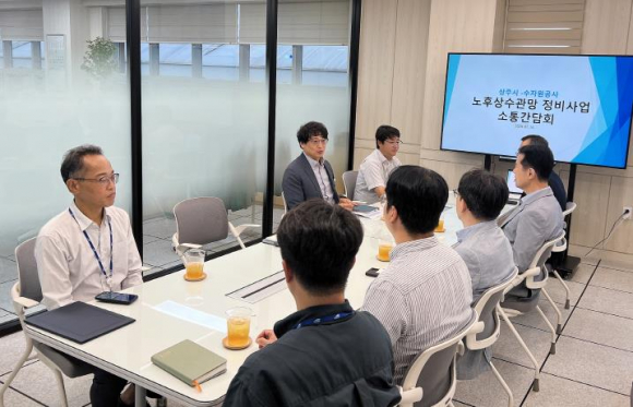상주시와 수자원공사 경북지역협력단은 16일 상주시 노후상수관망 정비사업의 원활한 추진을 위하여 소통간담회를 개최했다.상주시와 수자원공사 경북지역협력단은 지난 6월 노후상수관망 정비사업 위수탁 협약을 체결했고 사업 시행 전 애로사항 공유 및 상생발전 방안을 모색하기 위하여 상수도사업소장, 경북지역협력단장 등 10여 명이 소통 간담회에 참여하여 개선사항 공유에 참여했다.이번 사업은 누수율이 높은 상주시 모동급수구역 일원에 총사업비 480억원을 투입하여 2030년까지 노후상수관망을 정비하고 유수율을 85%까지 높여 재정 악순환을 개선하기 위한 사업이다.이날 간담회를 통하여 상주시는 이번 사업은 상수관망 노후화에 따른 유수율 제고 사업인 만큼 수자원공사에 사업의 신속한 추진을 당부했으며 수자원공사는 상주시의 적극적인 지원을 요청했다.안태용 상수도사업소장은 “지방상수도 현대화에 힘써주시는 수자원공사의 노고에 감사드리며 앞으로도 지속적인 상호 협력을 통하여 성공적인 사업수행이 이루어지도록 노력해달라”고 당부했다.
