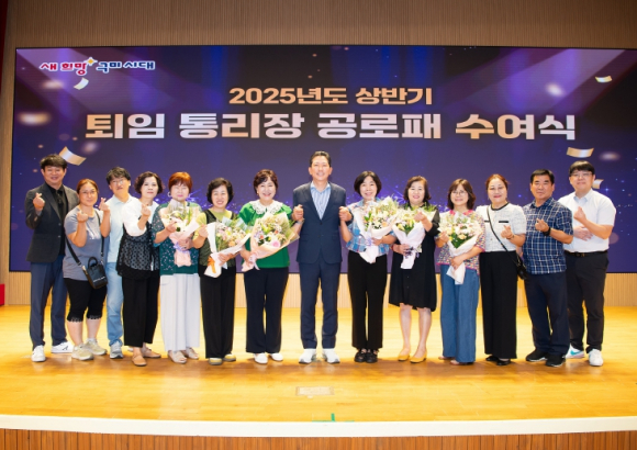 구미시는 7월 17일 시청 대강당에서 ‘2025 상반기 퇴임 통․리장 공로패 수여식’을 개최하고, 지역사회 발전을 위해 오랜 기간 헌신한 통․리장들에게 감사를 전했다.이날 행사에는 퇴임자와 가족, 지역주민 등 100여 명이 참석했으며, 지역 민심을 살피고 행정과 주민 간 가교 역할을 성실히 수행해 온 노고를 기리는 자리로 마련됐다.현재 구미시에는 692명의 통․리장이 활동 중이다. 이들은 일상적인 주민 민원 응대는 물론, 재난 시 마을 순찰과 현장 대응, 복지사각지대 발굴, 마을행사 운영 등 지역행정 전반에서 실질적인 역할을 수행하고 있다.구미시는 앞으로도 통․리장과의 협력 체계를 더욱 강화해 ‘현장 중심의 소통행정’을 실현하고, 주민 체감도가 높은 정책을 펼쳐 나갈 방침이다.김장호 구미시장은 “구미의 변화와 도약 뒤에는 늘 주민과 함께한 통․리장 여러분의 헌신이 있었다”며, “여러분의 땀과 열정이 오늘의 구미를 만들었고, 그 정신은 지역 발전의 든든한 기반이 될 것”이라고 밝혔다.